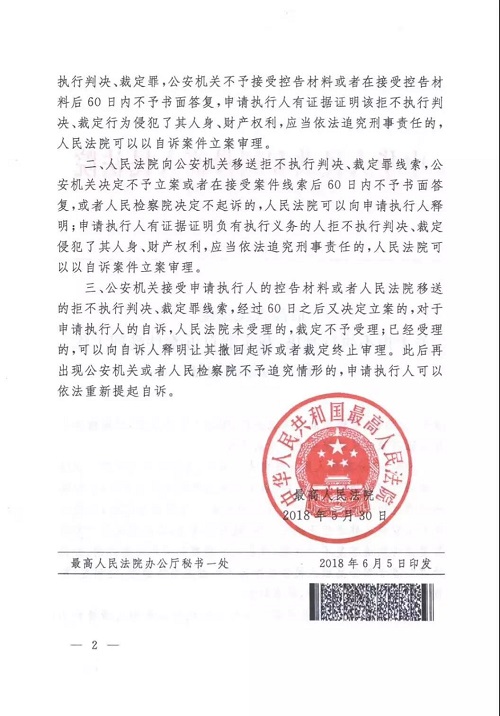 二、人民法院向公安机关移送拒不执行判决、裁定罪线索,公安机关决定不予立案或者在接受案件线索后60日内不予书面答复,或者人民检察院决定不起诉的,人民法院可以向申请执行人释明;申请执行人有证据证明负有执行义务的人拒不执行判决、裁定侵犯了其人身、财产权利,应当依法追究刑事责任的,人民法院可以以自诉案件立案审理。